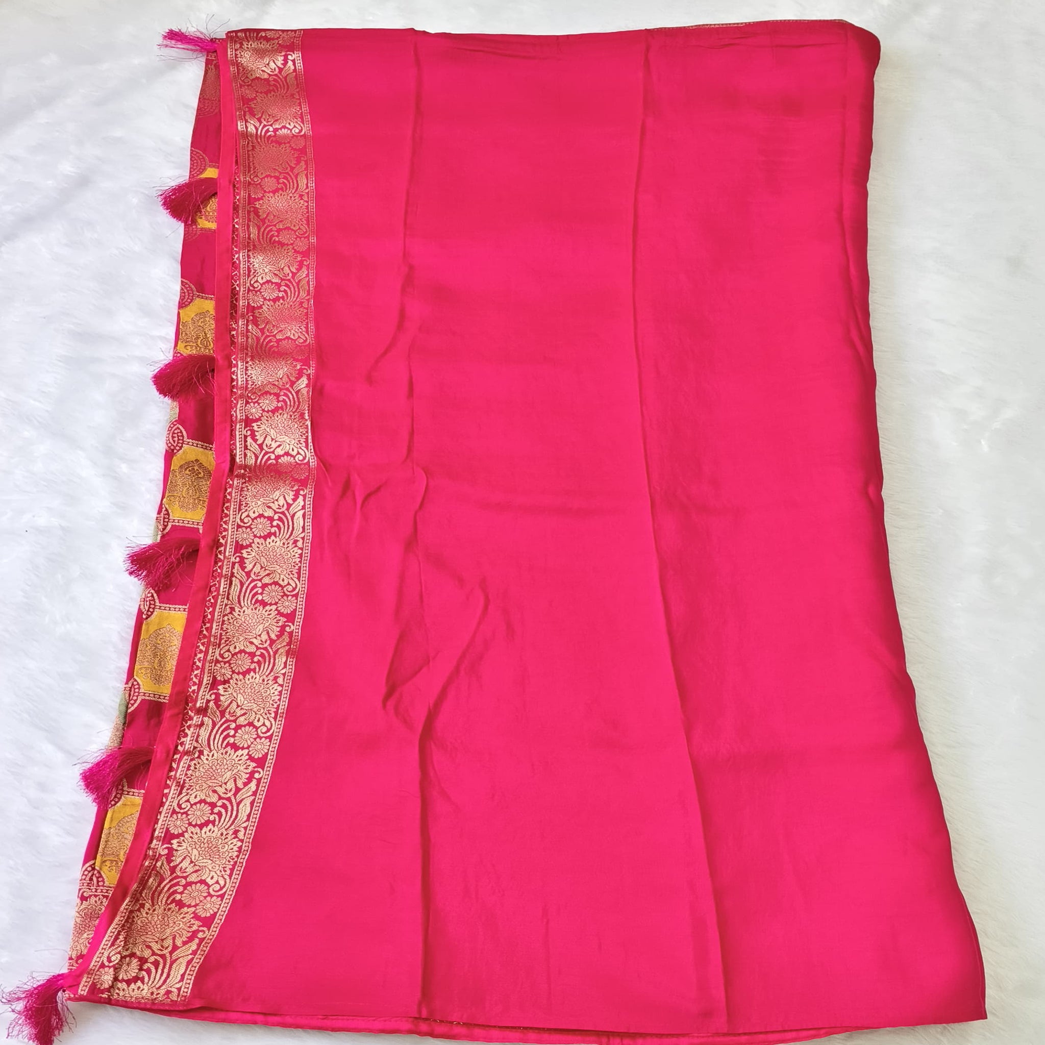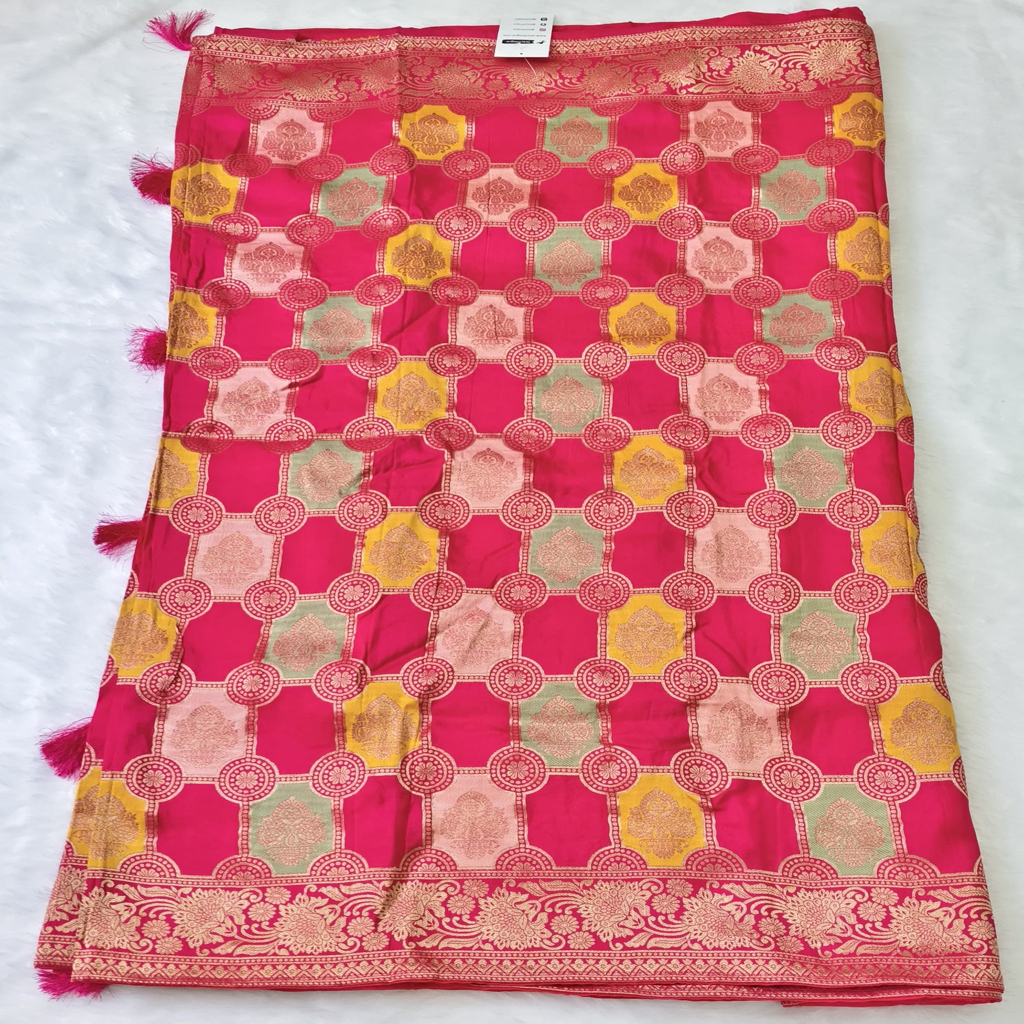 This Banarasi silk saree is crafted from the quality of silk to provide a luxurious and elegant drape. It features a traditional Banarasi design that adds a touch of cultural heritage and sophistication to any occasion. Elevate your wardrobe with this timeless piece of our Indian culture.