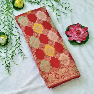 This Banarasi silk saree is crafted from the quality of silk to provide a luxurious and elegant drape. It features a traditional Banarasi design that adds a touch of cultural heritage and sophistication to any occasion. Elevate your wardrobe with this timeless piece of our Indian culture.