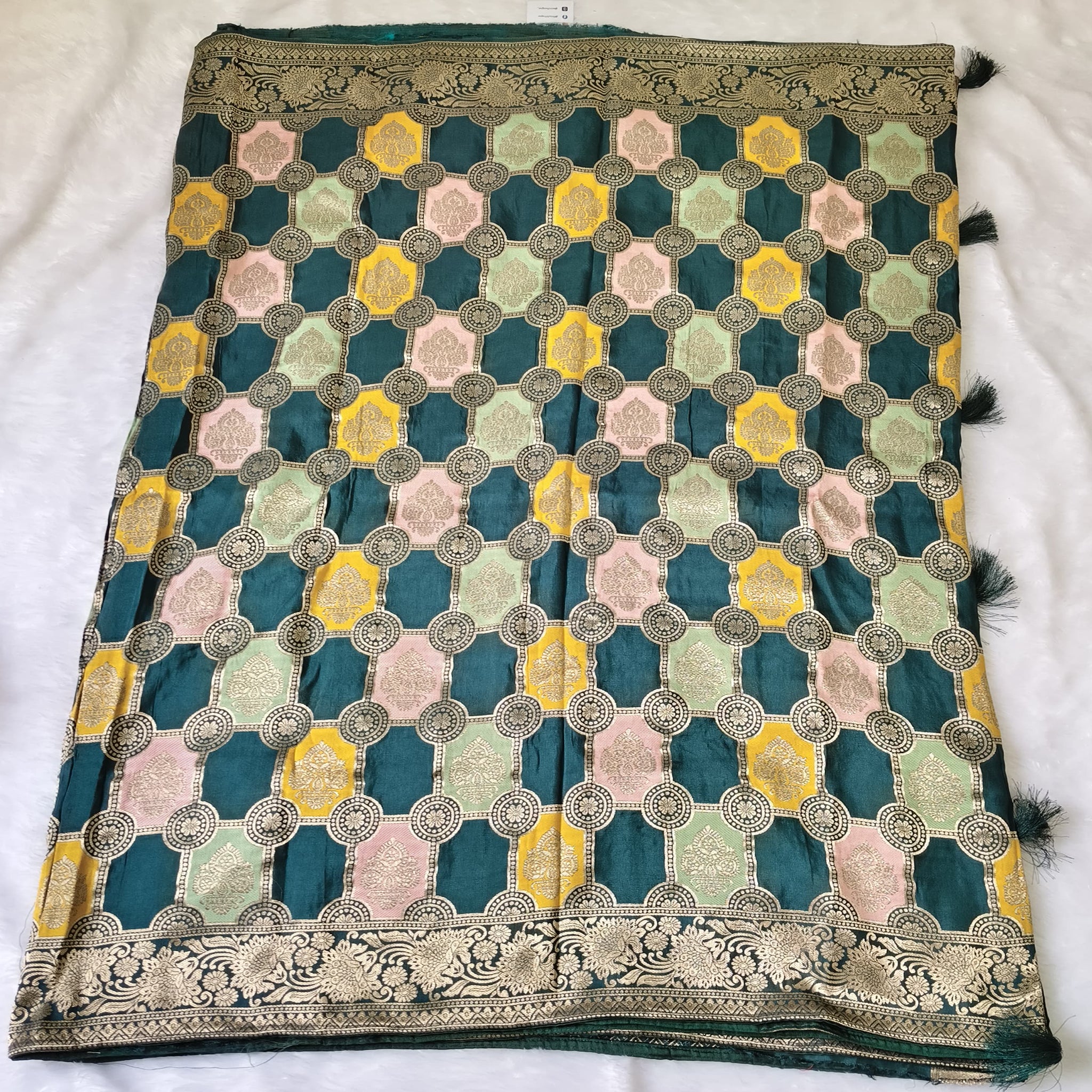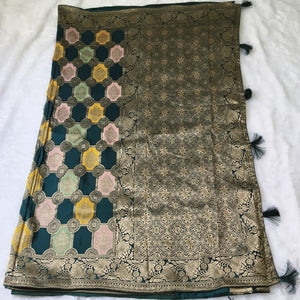 This Banarasi silk saree is crafted from the quality of silk to provide a luxurious and elegant drape. It features a traditional Banarasi design that adds a touch of cultural heritage and sophistication to any occasion. Elevate your wardrobe with this timeless piece of our Indian culture.