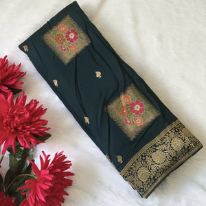 Introducing the exquisite Banarasi Silk Saree, finely made with the finest banarasi silk fabric. Guaranteed to elevate your look with its luxurious and timeless design. Experience the rich heritage and intricate detailing of this saree, perfect for any formal occasion. Embrace the elegance and sophistication of Banarasi silk.