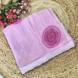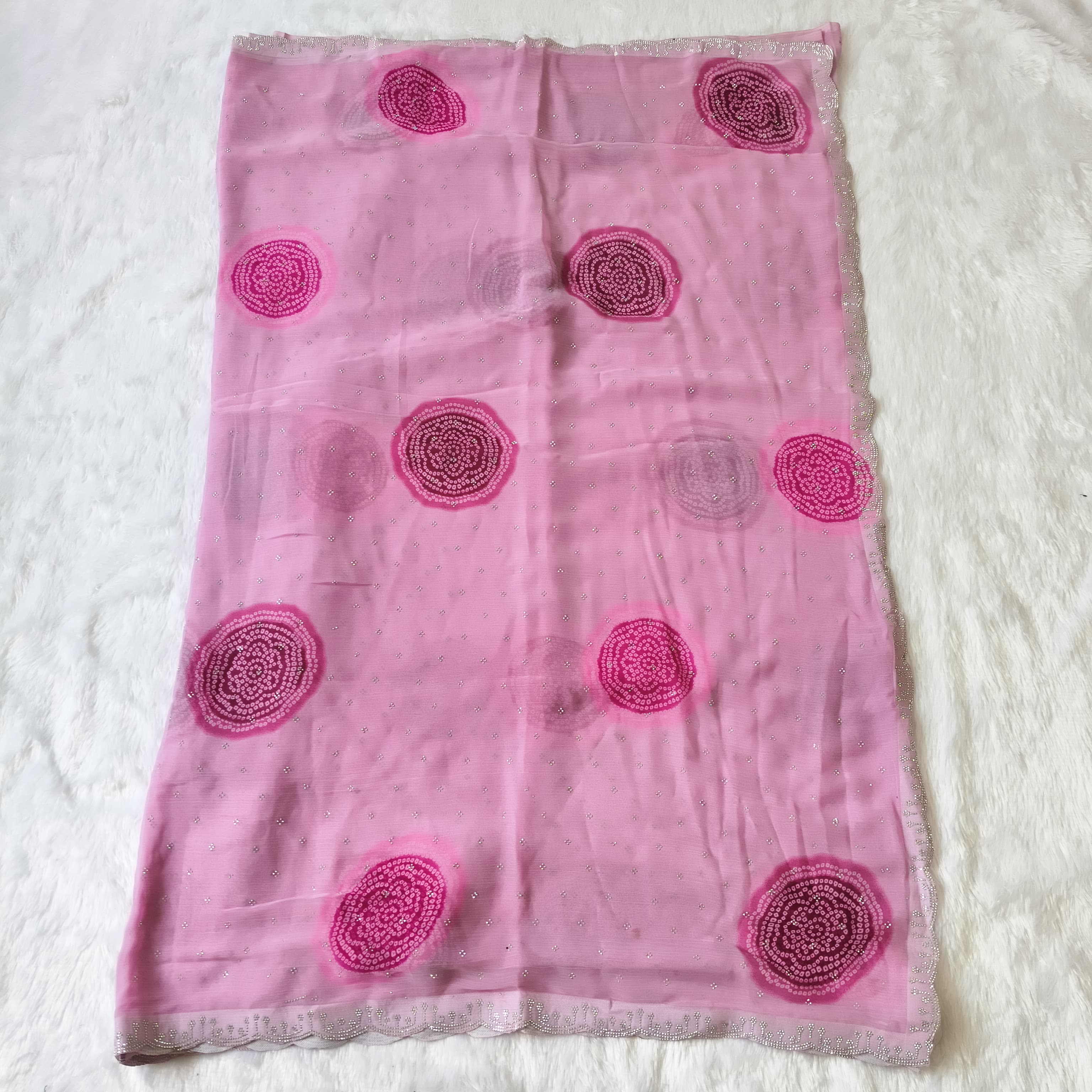 This elegant chiffon saree features intricate Swarovski crystal embellishments that add a subtle sparkle to its lightweight, flowing fabric. Perfect for formal occasions, it combines delicate craftsmanship with graceful draping, ensuring both comfort and sophistication. Ideal for those seeking a refined and timeless look.