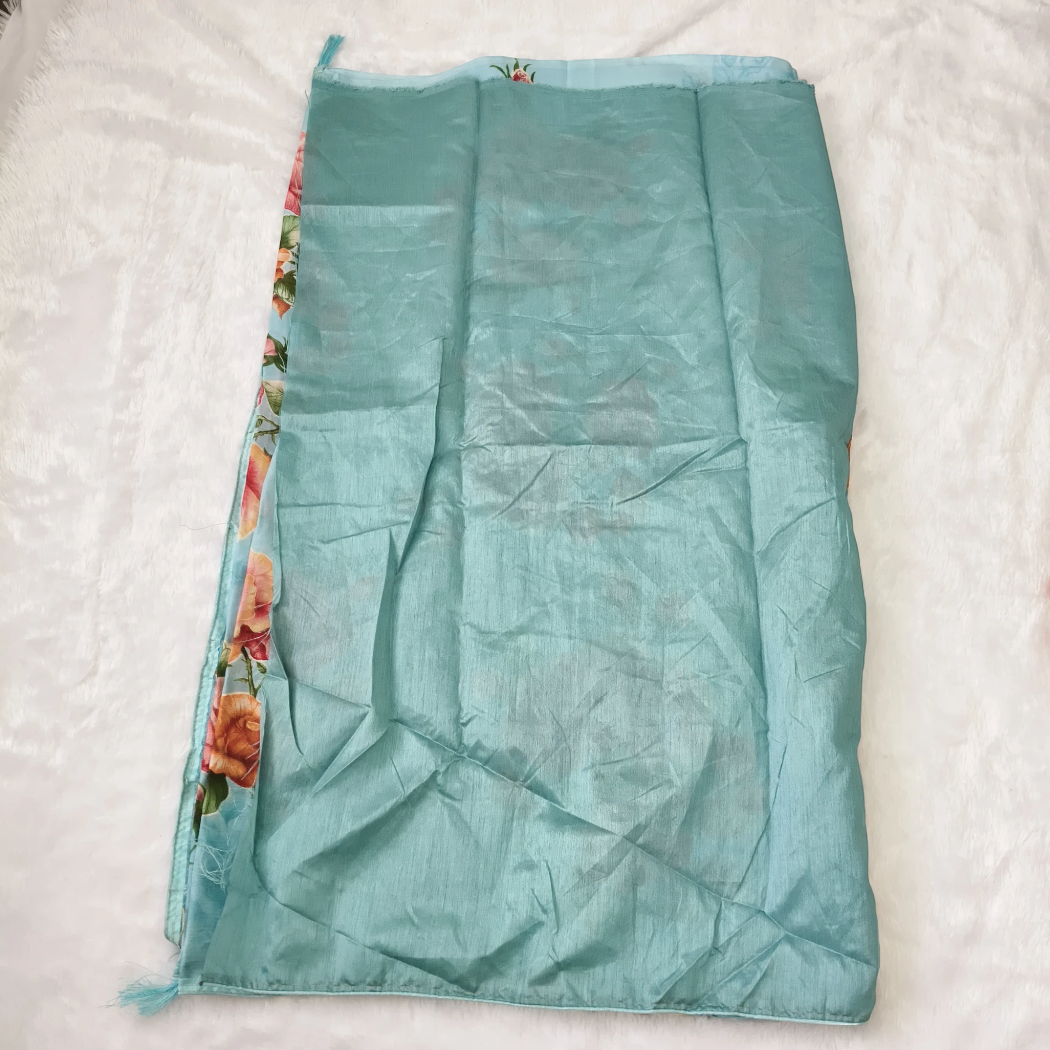 This Chinnon saree combines the elegance of digital prints with intricate handwork, offering a refined and contemporary look. Crafted from lightweight, breathable fabric, it ensures comfort while maintaining a graceful drape. Ideal for both formal occasions and festive events, this saree showcases expert craftsmanship that highlights traditional artistry with a modern touch.