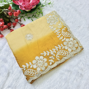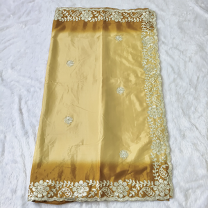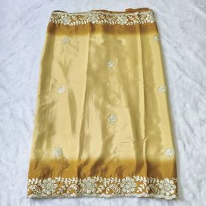 This Crepe Silk Saree features intricate gotapatti work that enhances its elegant appeal. The smooth, lightweight fabric drapes effortlessly, providing both comfort and sophistication. Ideal for special occasions, the delicate gotapatti detailing adds a touch of traditional craftsmanship, making this saree a refined choice for those who appreciate classic artistry combined with luxurious texture.