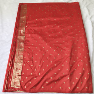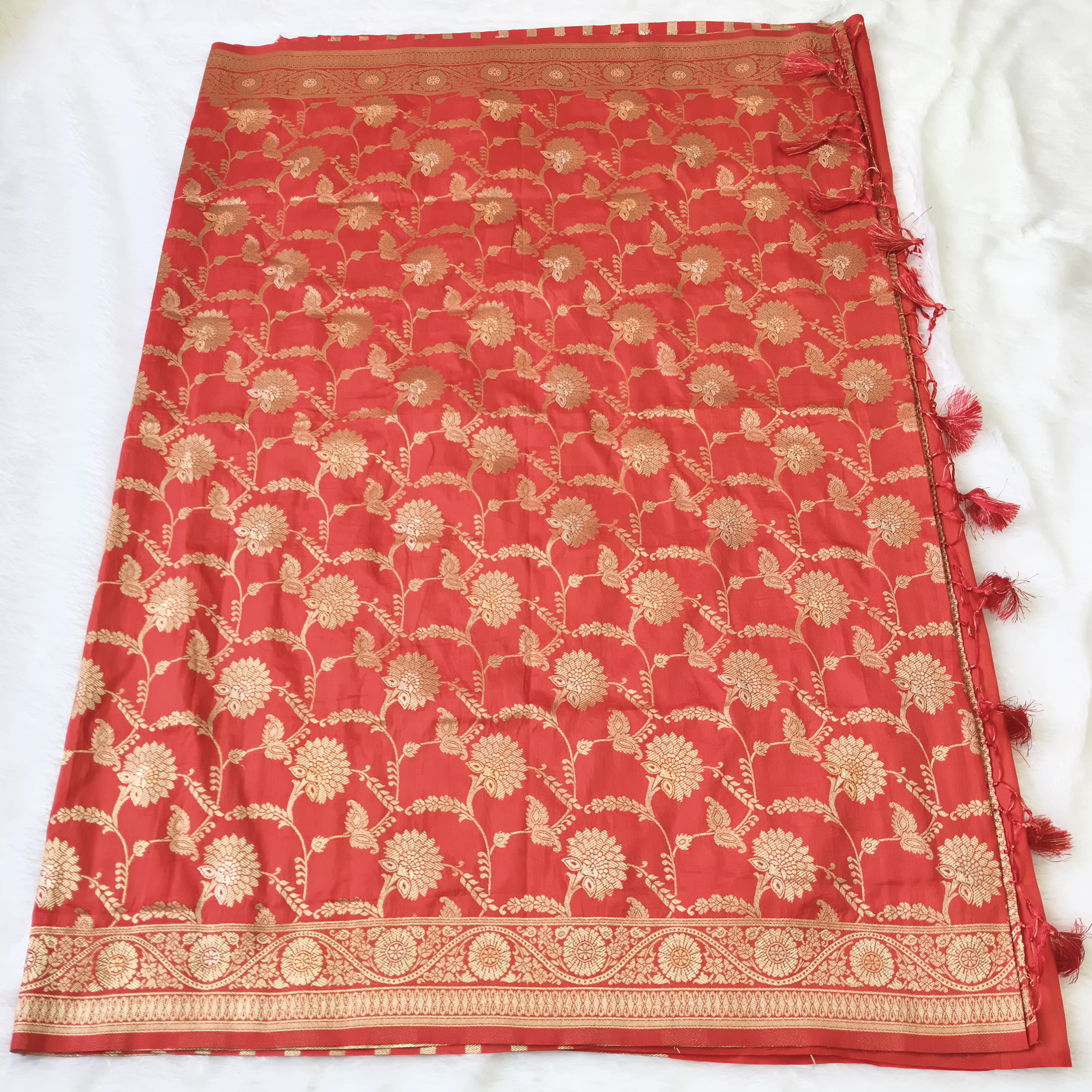 It has golden zari work, with full jaal work on whole saree with heavy golden meenakari zari work on border and rich pallu.