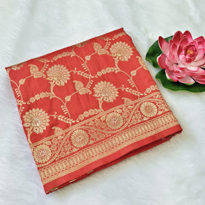 Expertly made from luxurious dola silk, the Dola Silk Saree is a timeless addition to your wardrobe. Featuring delicate details, this saree exudes elegance and sophistication. Experience the comfort and beauty of dola silk for yourself and elevate any occasion with this exquisite piece.