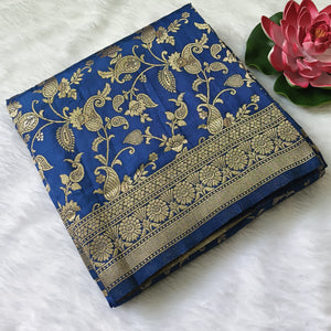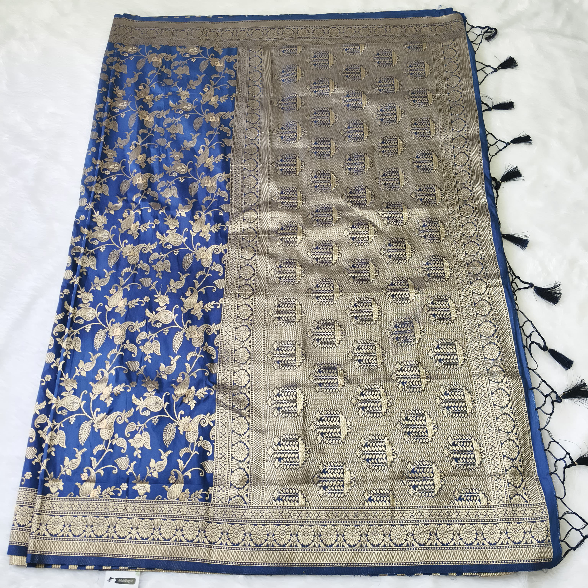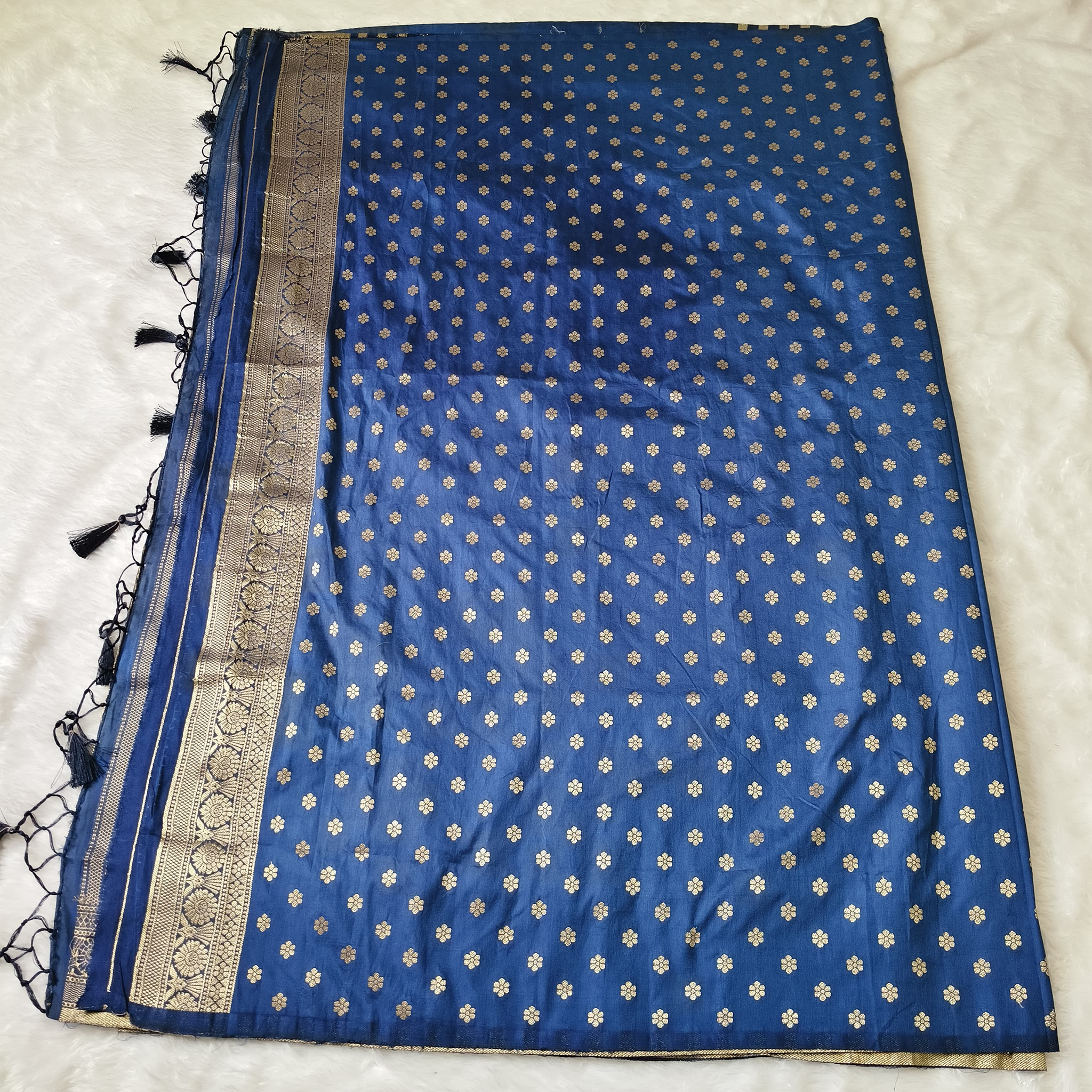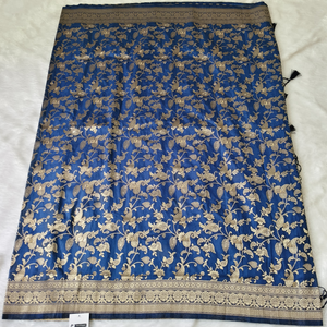 Golden zari border on whole saree, golden zari work on whole saree, rich pallu.