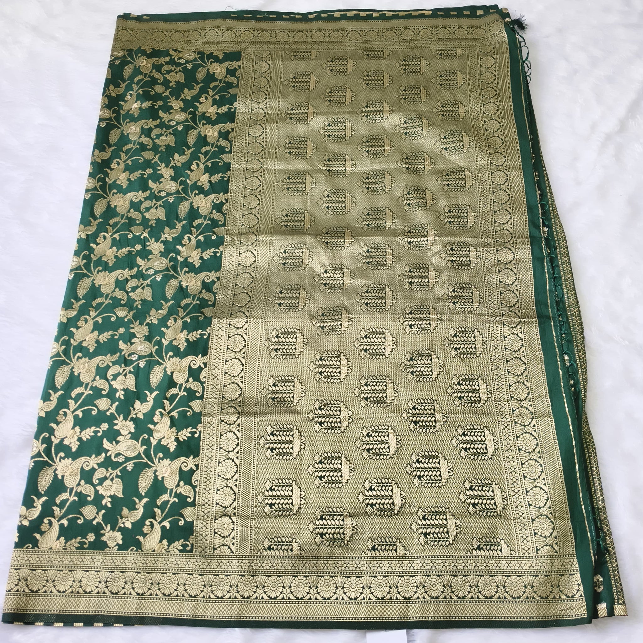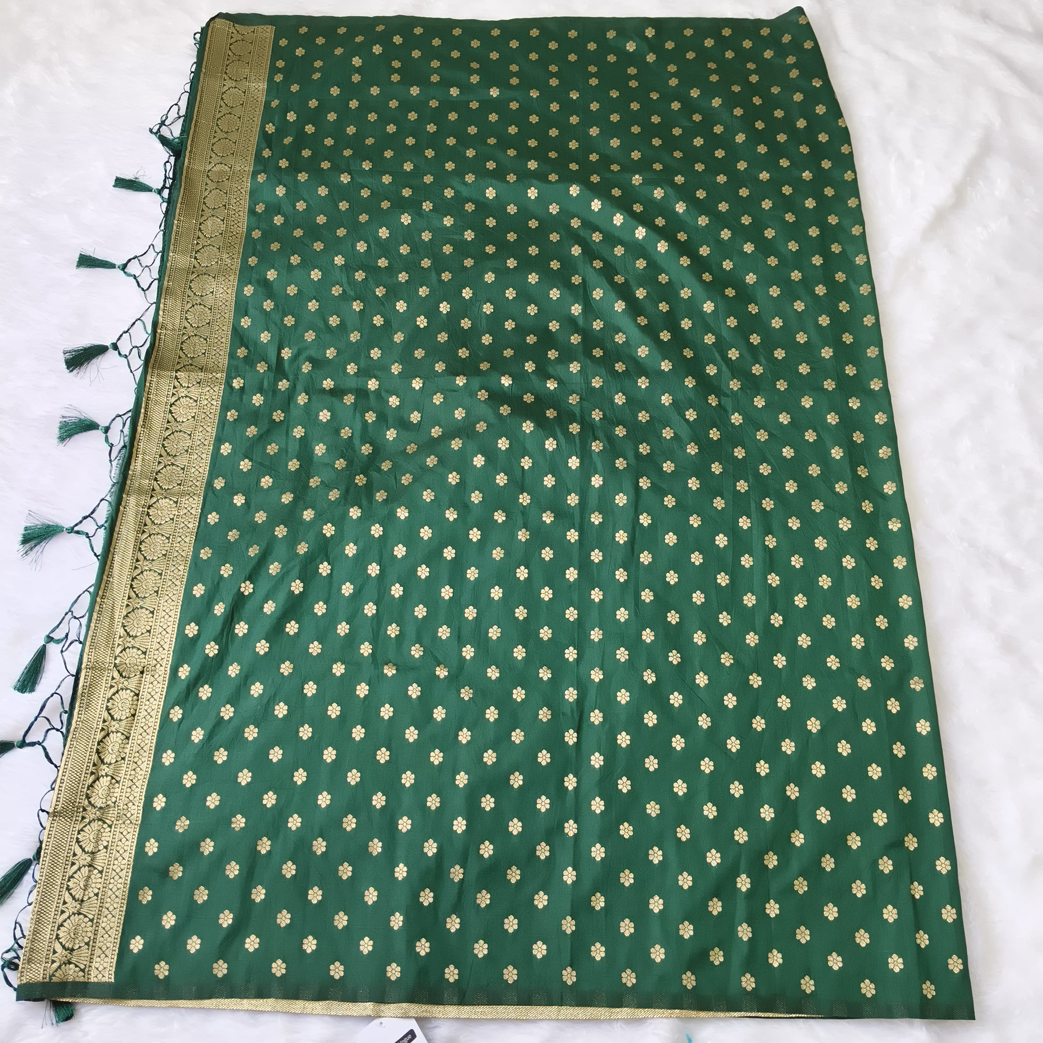 Golden zari border on whole saree, golden zari work on whole saree, rich pallu.
