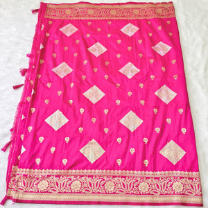 Made from dola silk material, this Dola Silk Saree is the perfect addition to any traditional wardrobe. With its smooth texture and elegant drape, this saree is sure to make a statement at any occasion. Experience the beauty and comfort of dola silk with this exquisite saree.