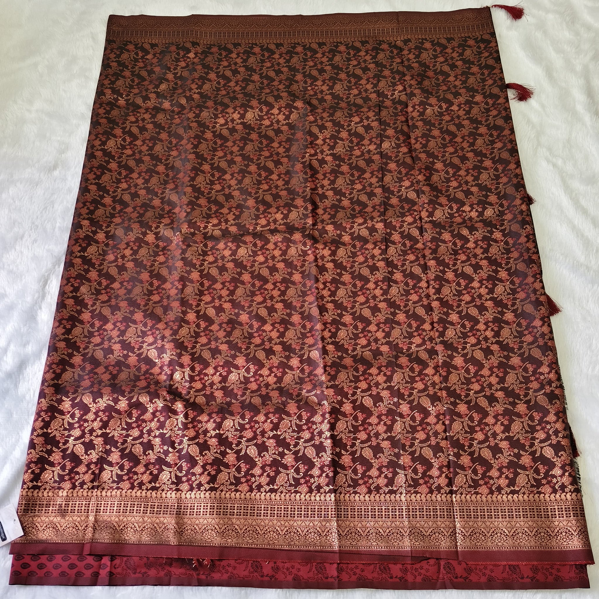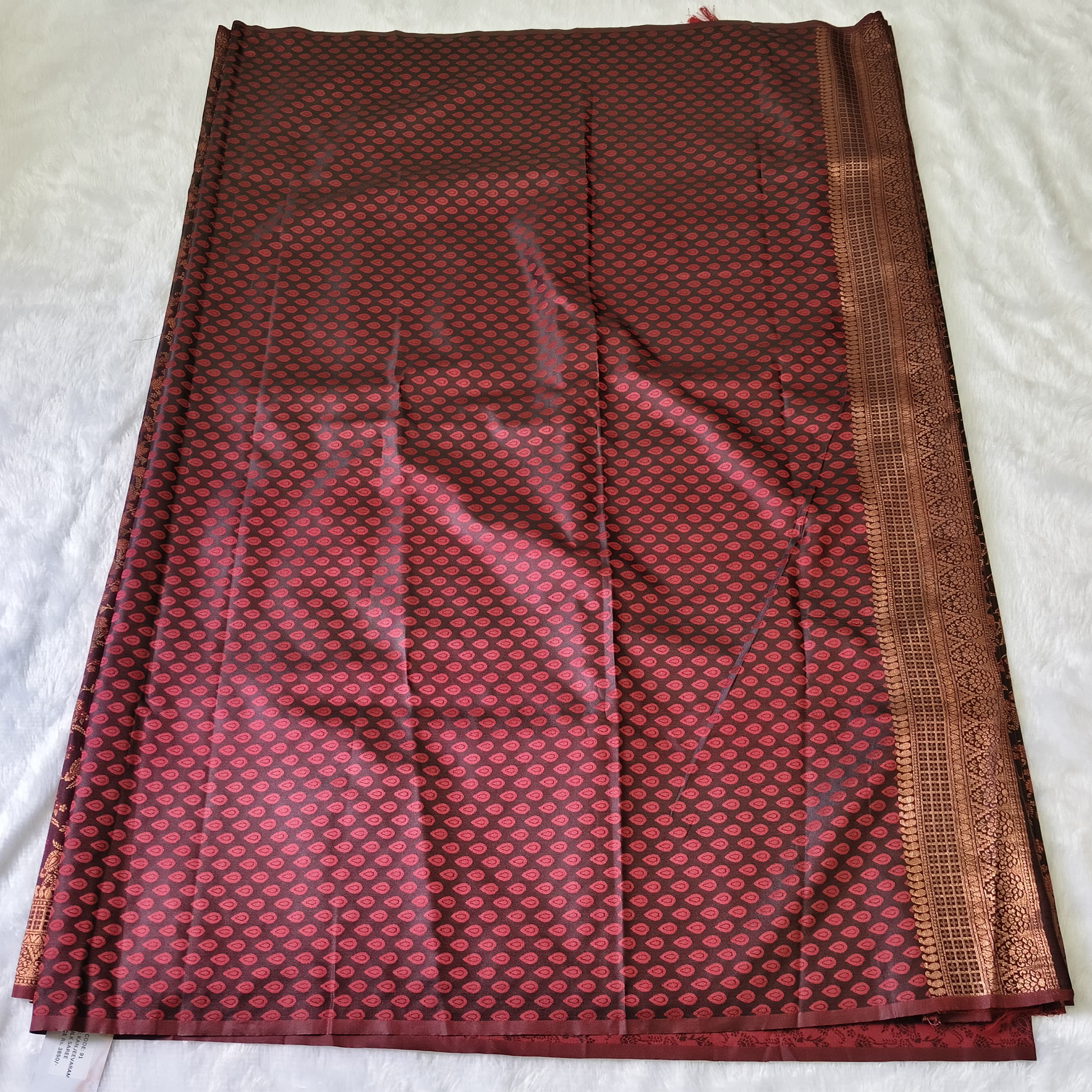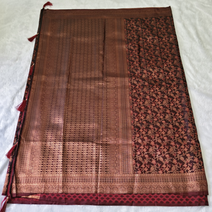 Copper zari border on whole saree, copper color weaving work on whole saree, rich pallu.