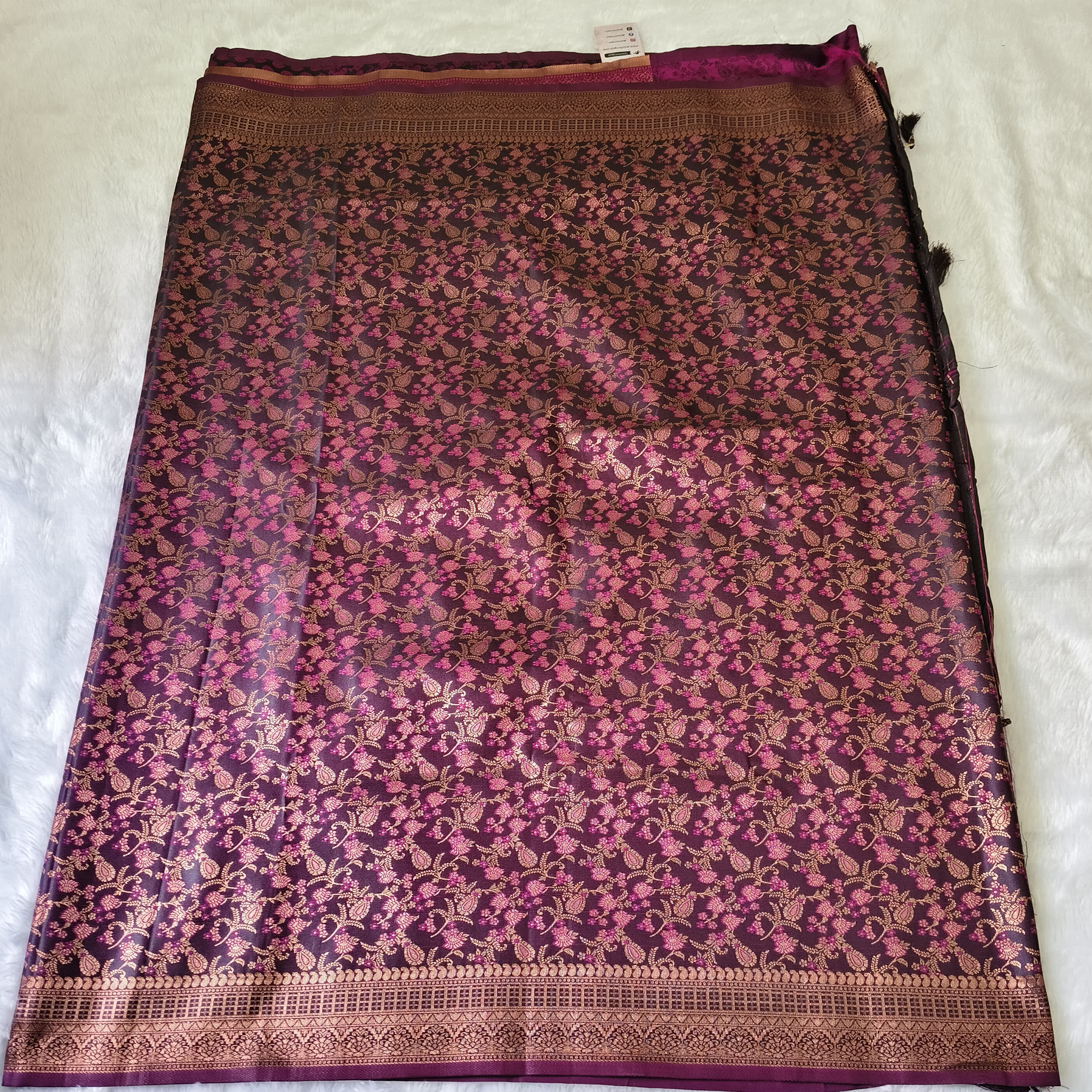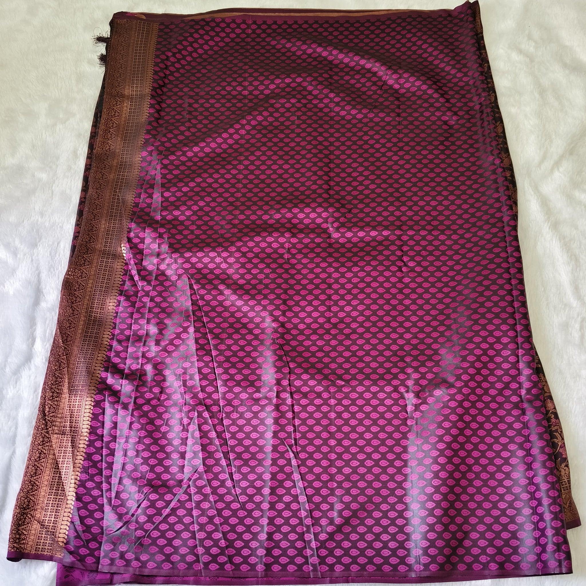 Copper zari border on whole saree, copper color weaving work on whole saree, rich pallu.