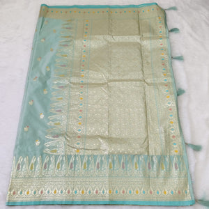Discover the luxurious feel of our Lichi Silk Saree. Made with lichi silk, this saree offers an unmatched luster and smoothness, perfect for any occasion. Elevate your wardrobe with the exquisite drape and elegant design of this traditional Indian attire.