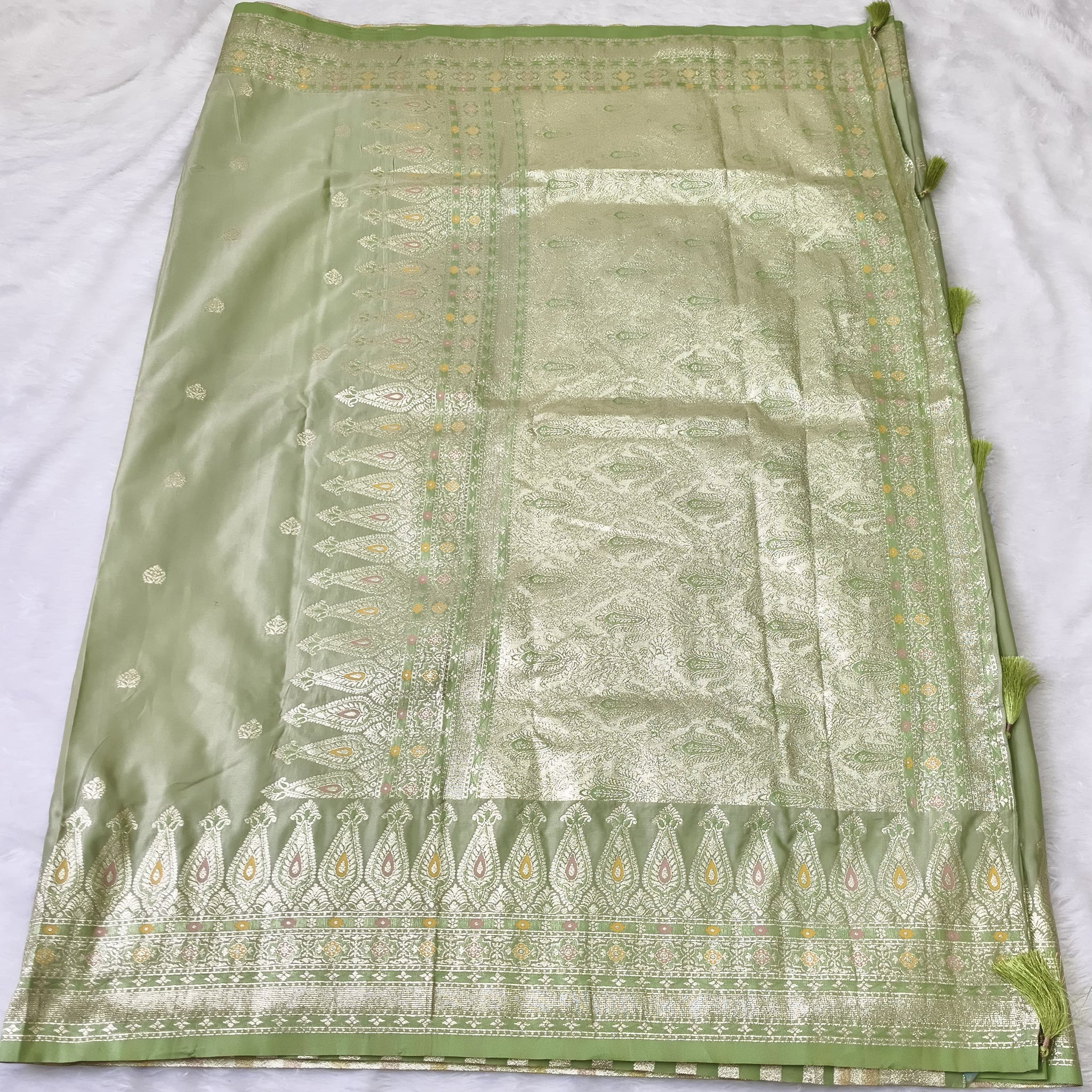 Discover the luxurious feel of our Lichi Silk Saree. Made with lichi silk, this saree offers an unmatched luster and smoothness, perfect for any occasion. Elevate your wardrobe with the exquisite drape and elegant design of this traditional Indian attire.