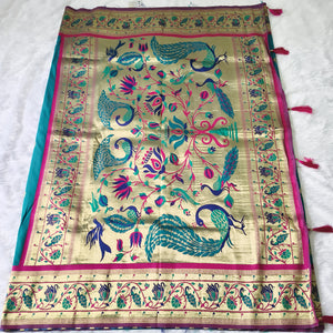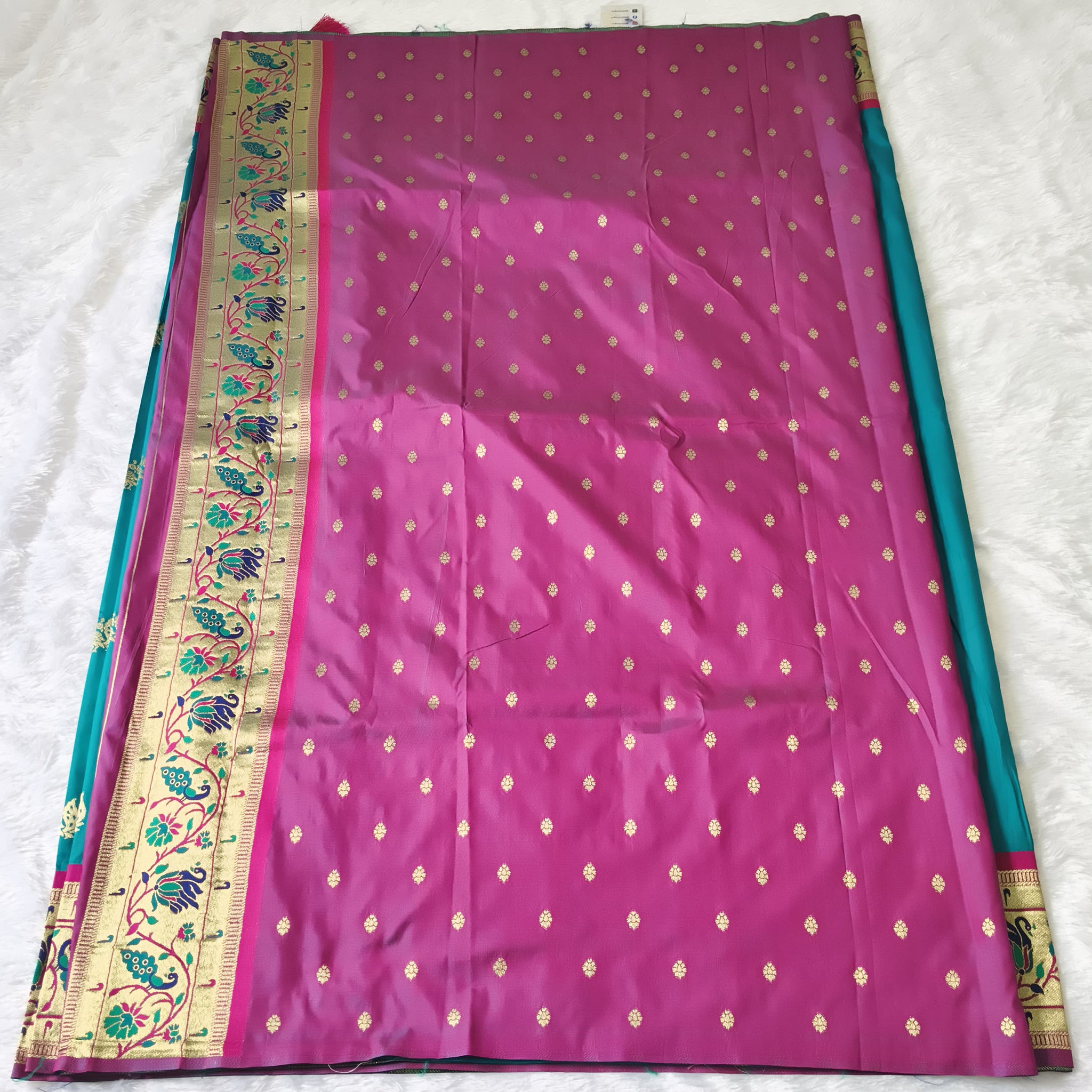 Made from luxurious Paithani silk, our sarees are a timeless addition to any wardrobe. Made with intricate designs and vibrant colors, our sarees are the perfect blend of traditional and modern. Elevate your style and showcase your expertise with a Paithani silk saree, the perfect choice for any occasion.