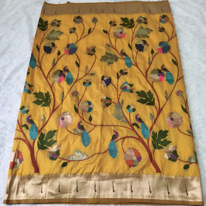 Golden zari border on whole saree, Rich Pallu, zari weaving on whole saree.