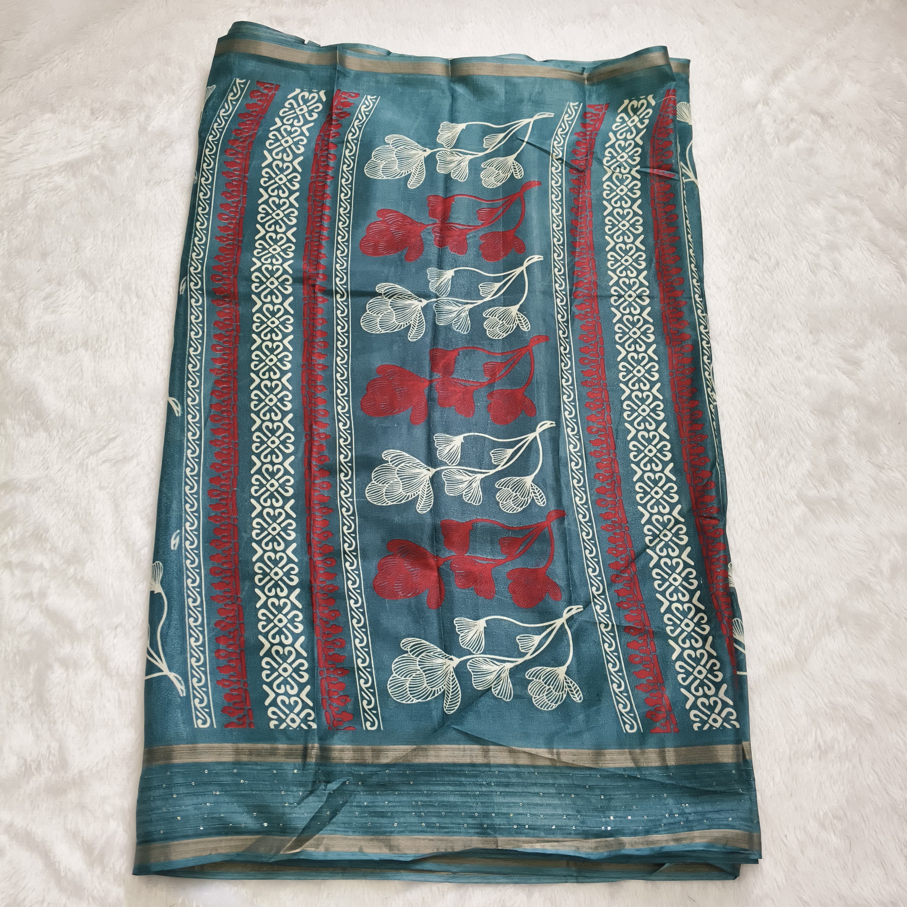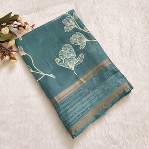 Elevate your ethnic wardrobe with this expertly crafted printed saree featuring intricate sequence work. The delicate embellishments add a subtle shimmer, enhancing the saree’s vibrant patterns while maintaining elegance. Perfect for festive occasions or formal events, this saree combines traditional artistry with contemporary style for a refined and graceful look.