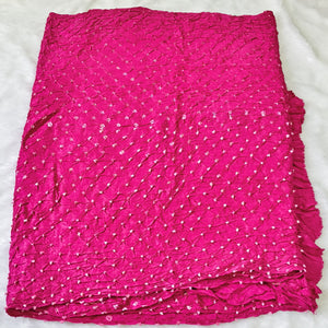 Expertly crafted from pure modal, this bandhej saree is a must-have for any wardrobe. With its intricate bandhej design, this saree exudes elegance and sophistication. Made from high-quality fabric, it provides luxurious comfort and drapes beautifully. Add a touch of tradition and grace to any occasion with this stunning saree.
