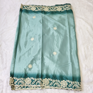 Experience elegance with this Soft Crepe Silk Saree, featuring intricate gotapatti work that adds a refined shimmer to its smooth texture. The lightweight crepe silk drapes gracefully, ensuring comfort and sophistication for any occasion. Perfect for those who appreciate traditional craftsmanship combined with modern wearability.