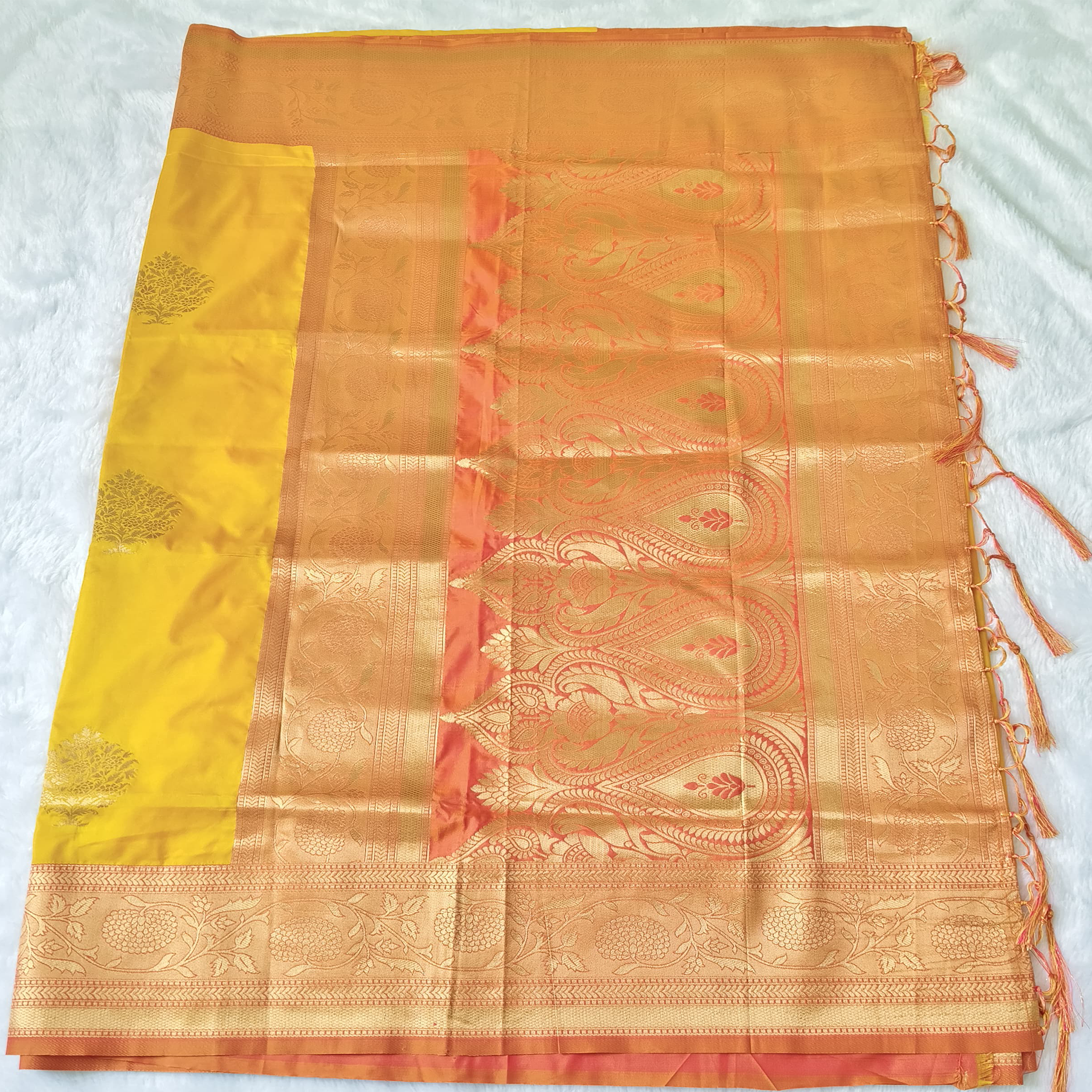 Big Border with copper zari, large floral design of zari with rich pallu.